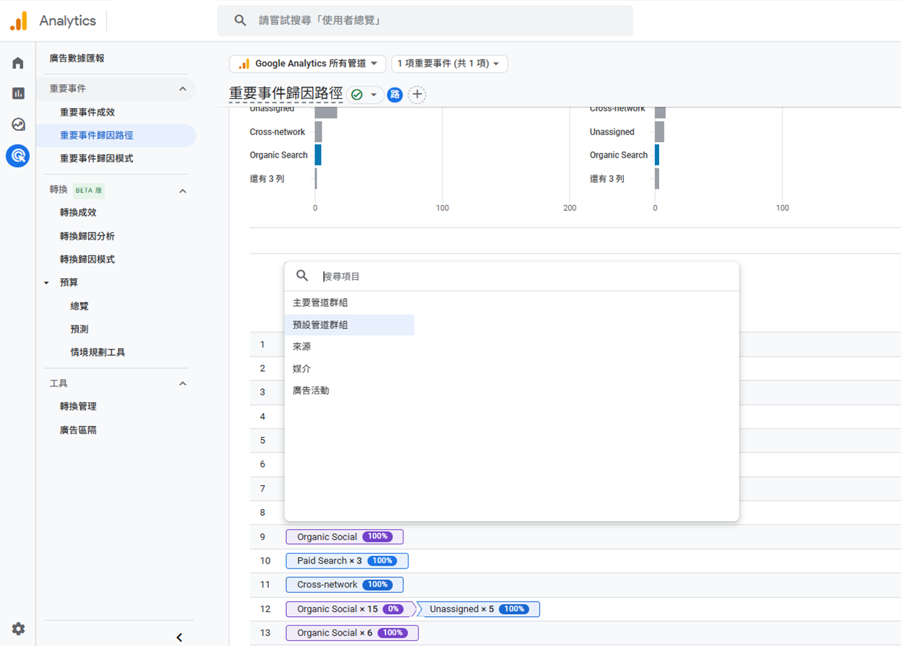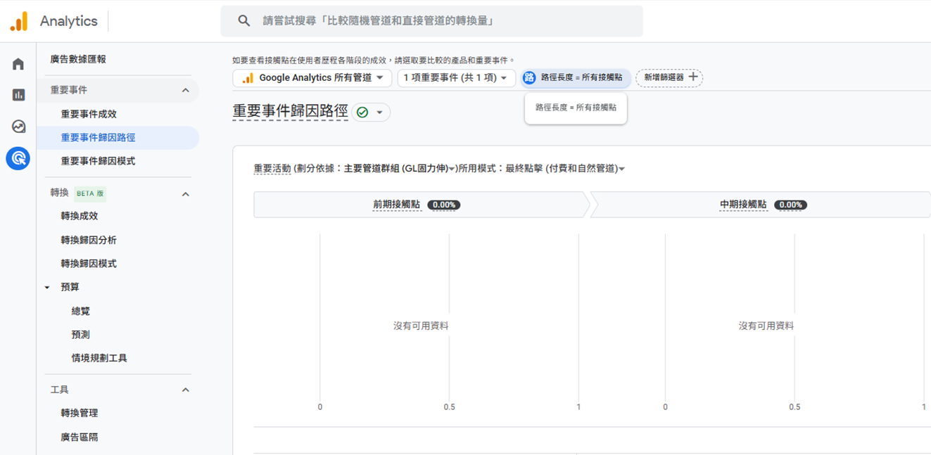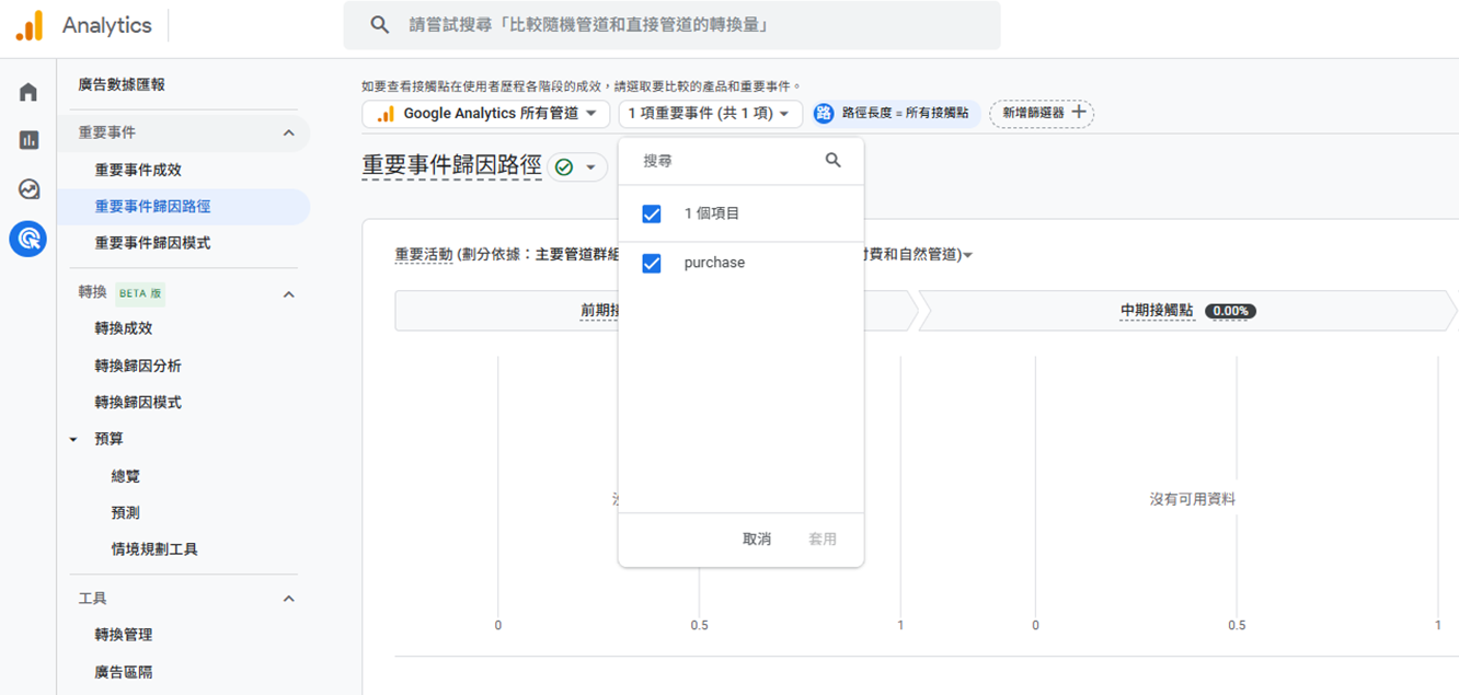 2-8 到【廣告】→ 【歸因路徑】或 【重要事件歸因路徑】