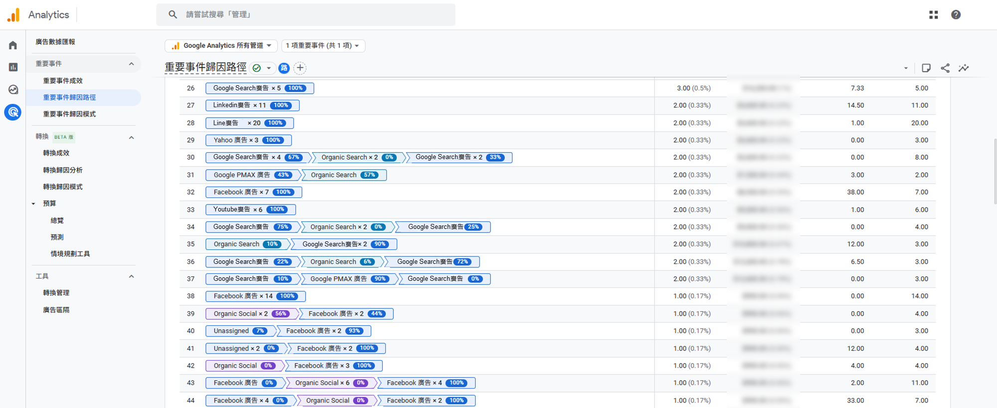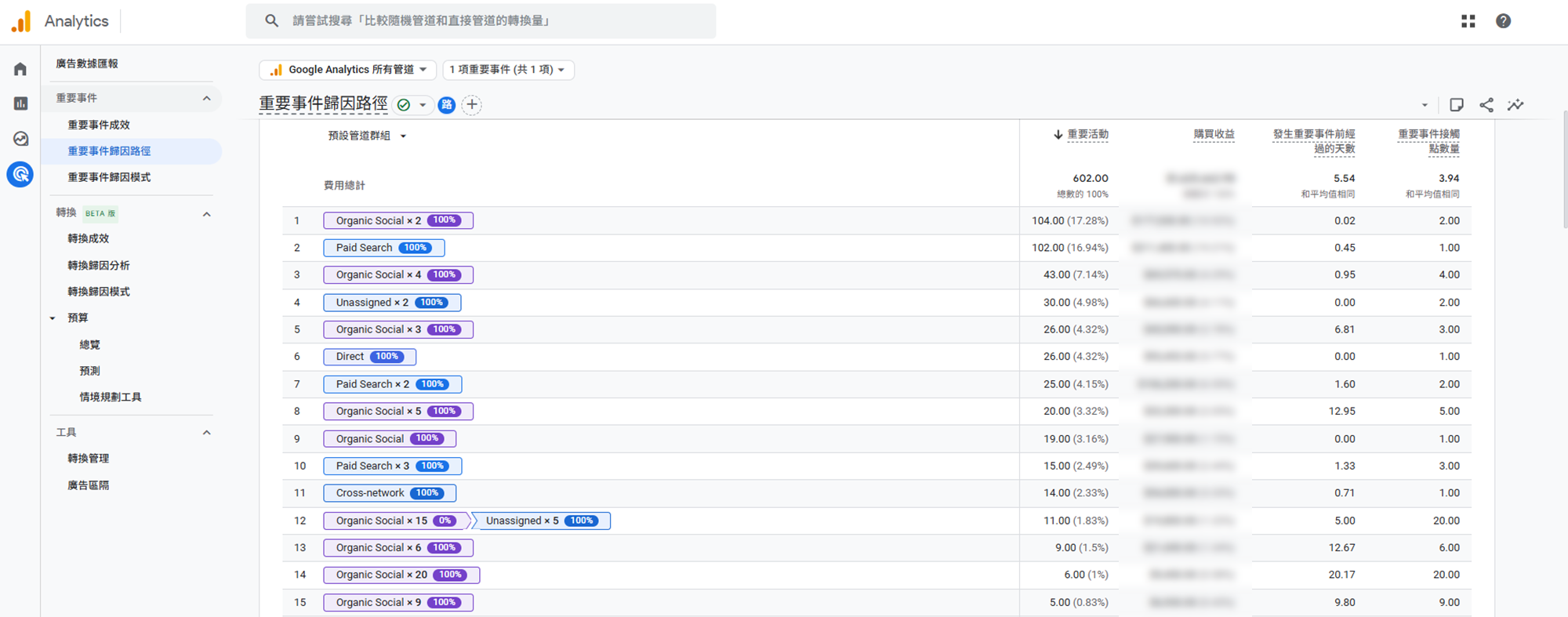 ●重要活動:該轉換路徑達成的重要事件次數。